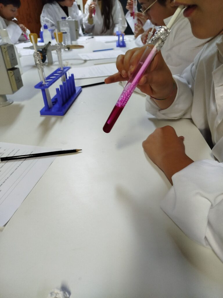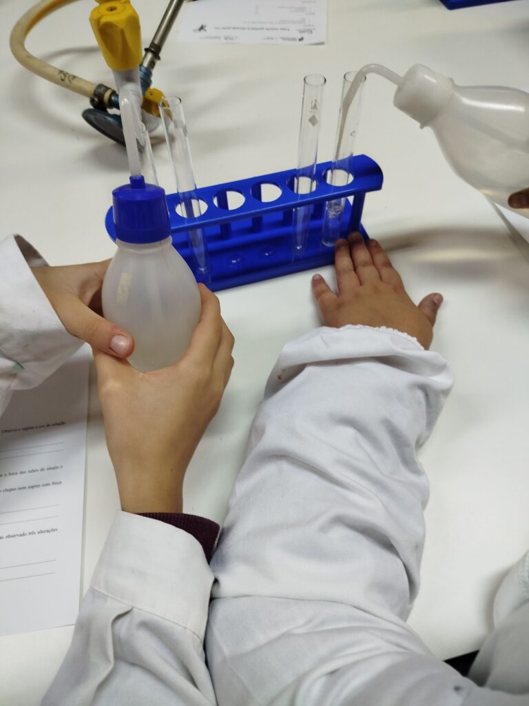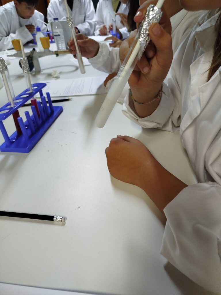 Esta semana os alunos do Clube de Ciência Viva realizaram uma experiência simples e surpreendente que permitiu detetar o dióxido de carbono presente no ar exalado durante a respiração. A experiência consistiu em soprar suavemente através de um tubo de ensaio para dentro de um recipiente com água de cal. Esta atividade despertou a curiosidade de todos e ajudou a compreender melhor as trocas gasosas que ocorrem no organismo.