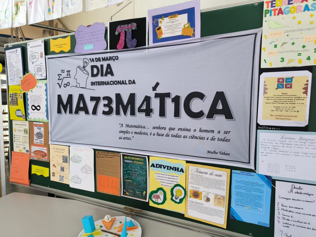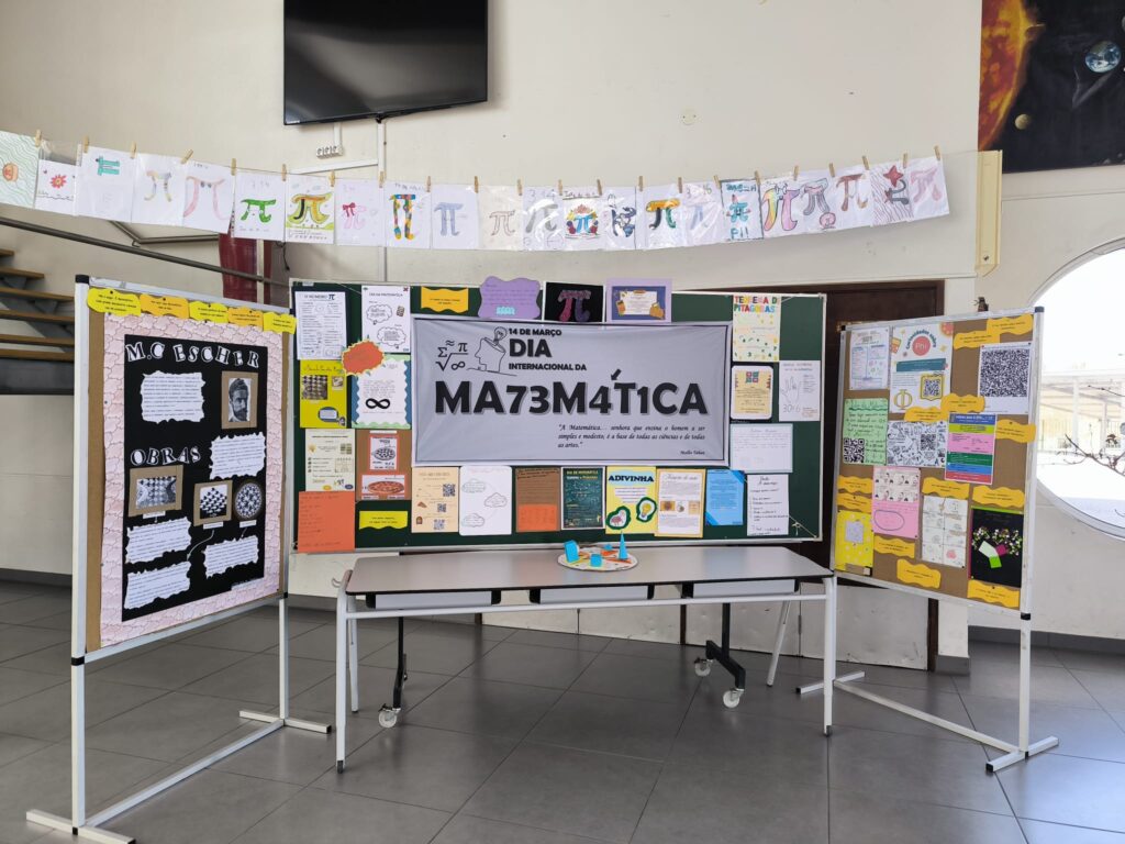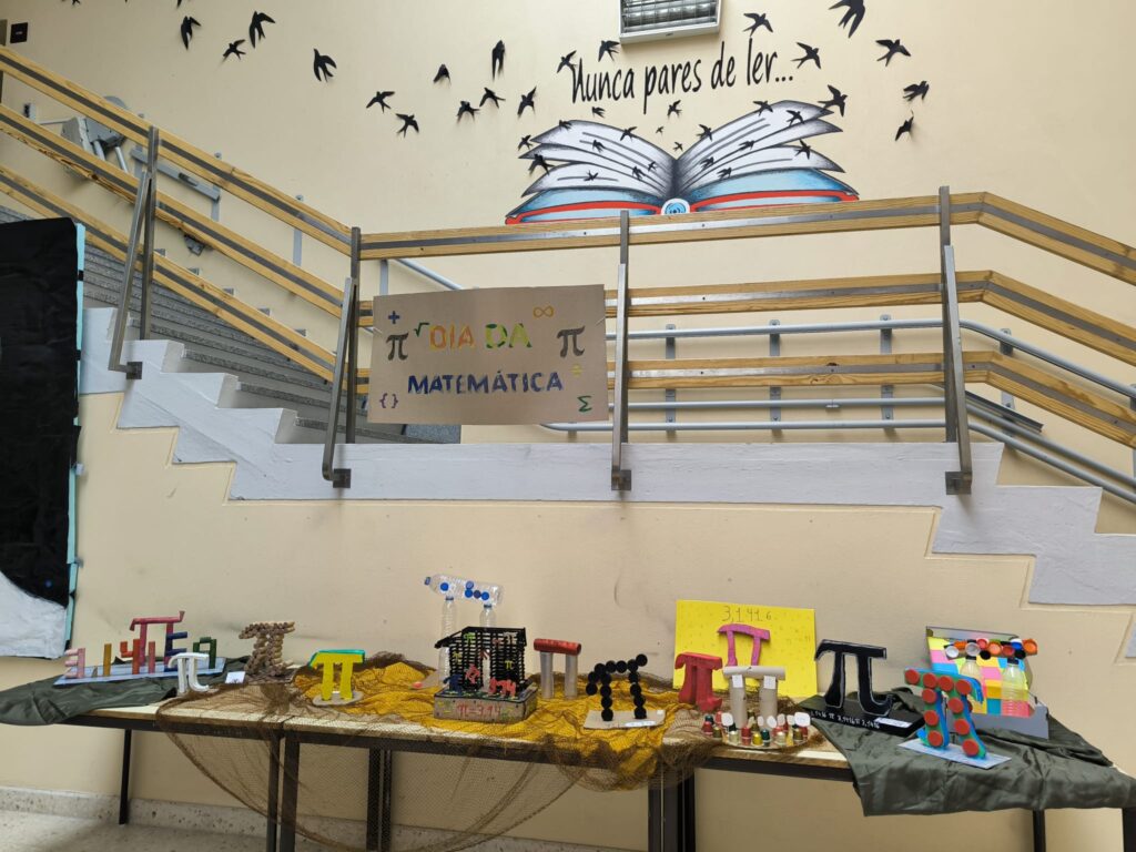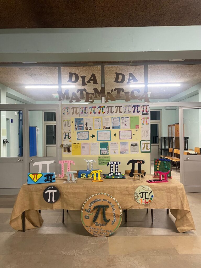 No 2.º ciclo, os alunos elaboraram diversos trabalhos dedicados ao número π (pi), incluindo maquetes criativas e um “estendal” temático que destacou a importância e as curiosidades deste número emblemático da matemática.