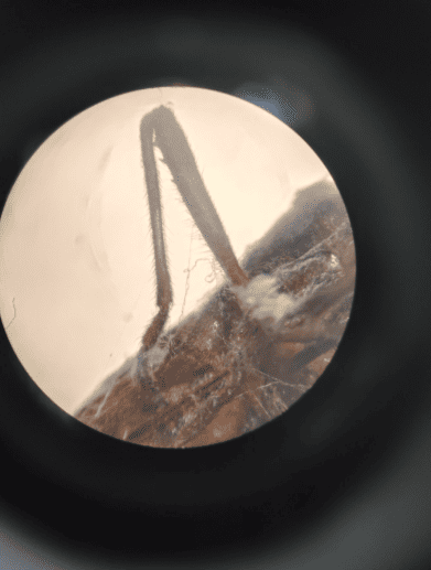 Os alunos do clube de Ciência Viva procuraram insetos e aranhas no recinto da escola para observação das suas partes constituintes na lupa binocular.