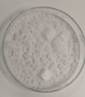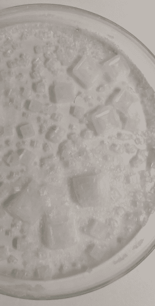 No Clube de Ciência Viva os alunos desenvolveram a atividade de formação de cristais de cloreto de sódio a partir da dissolução inicial do sal.