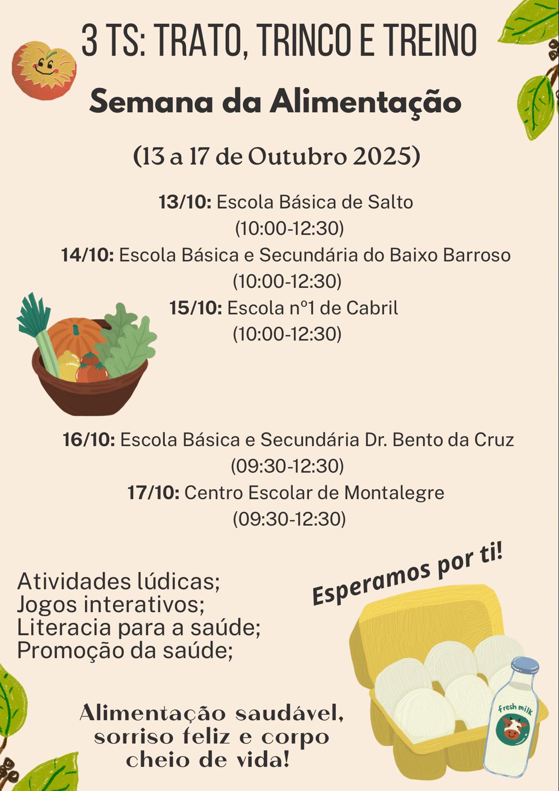 No âmbito da comemoração da “Semana ligada ao Dia Mundial da Alimentação”, o Projeto de Educação para a SaĂşde (PES) do Agrupamento de Escolas Dr. Bento Cruz promoveu, entre os dias 13 e 17 de outubro, um conjunto de atividades criativas e educativas nas várias …